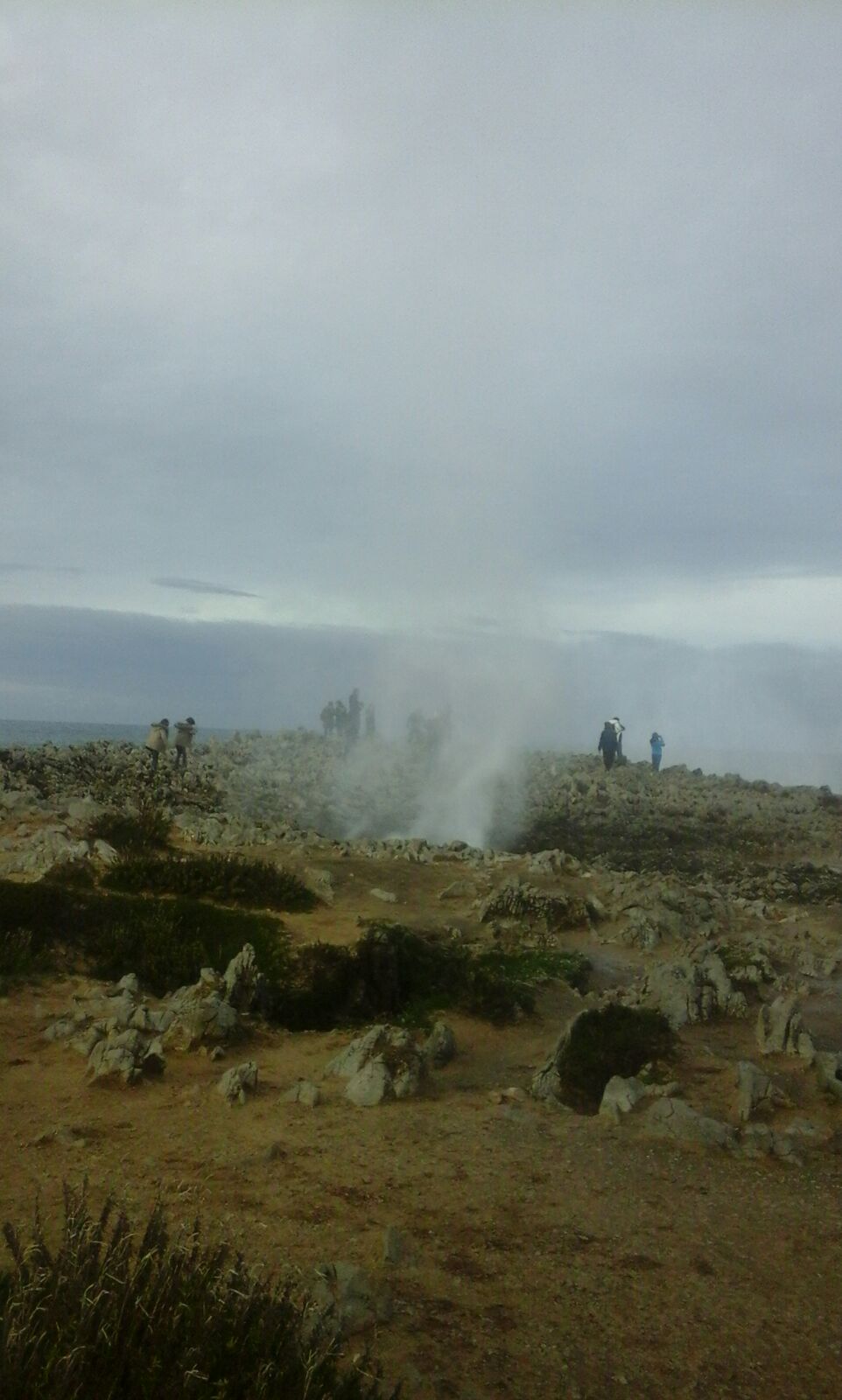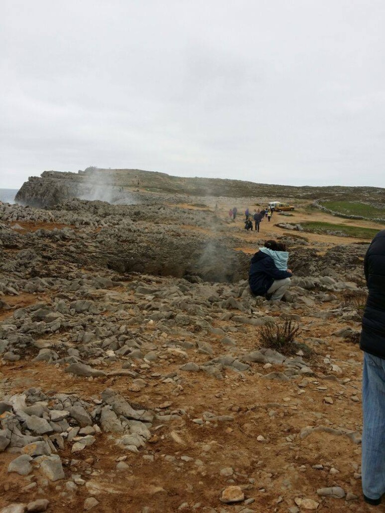 Así es la naturaleza… En algunas playas y acantilados de Llanes, cuando el mar Cantábrico está bravo y hay fuerte oleaje (marejada) el agua se filtra por unas grietas que se han ido formando en la tierra y asciende en forma de pequeños y feroces volcanes de agua.
